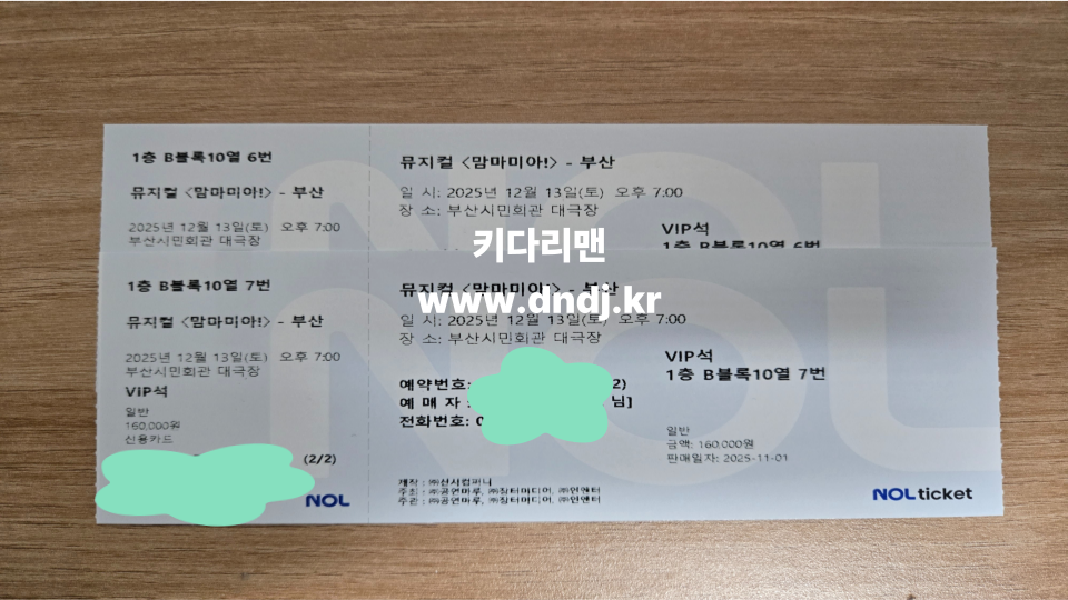 드디어 도착한 2025 뮤지컬 맘마미아 부산 티켓! 부산시민회관 대극장 VIP석 1층 B블록 10열 예매 성공 후기와 함께, 연말 최고의 공연을 200% 즐기기 위한 좌석 선정 팁과 기대평을 상세하게 정리해 드립니다.